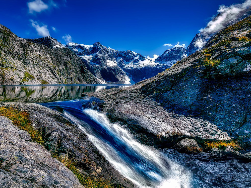 フィヨルドランド国立公園にあるミルフォード・サンドは、原始のままの姿が残るきっての観光地。川が浸食されて削れた谷に、海面が上昇して海水が流れ込んで造られた入り江と海岸線が、美しいコントラストを作り出している。
