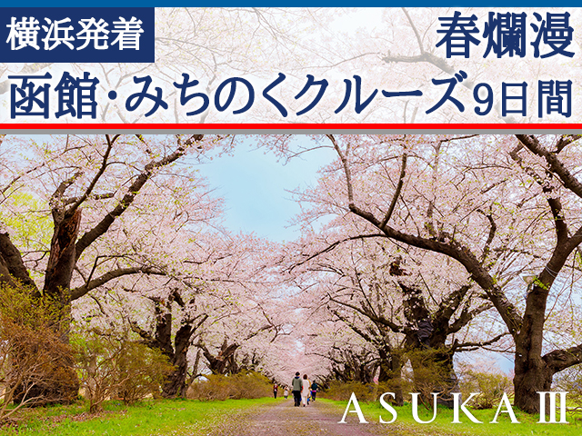 | 4/13(火) - 4/21(水) | 横浜 | My ASUKA CLUB会員割引20% NEW春爛漫 函館・みちのくクルーズ |