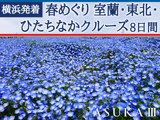 | 4/22(水) - 4/29(木・祝) | 横浜 | My ASUKA CLUB会員割引20% NEW春めぐり 室蘭・東北・ひたちなかクルーズ |