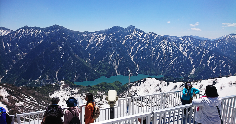 The Tateyama Kurobe Alpine Route is a sightseeing route in Chubu Sangaku National Park, connecting Toyama City, Toyama Prefecture and Omachi in Nagano Prefecture. The route affords breathtaking vistas across the North Alps, you can make the ascent by cable car, trolley bus and ropeway. The best scenery in spring is the towering walls of snow from April to May. At 2,450 meters, Murodo-daira receives an average of over 20 meters of snow each winter, one of the heaviest snowfalls in the world.